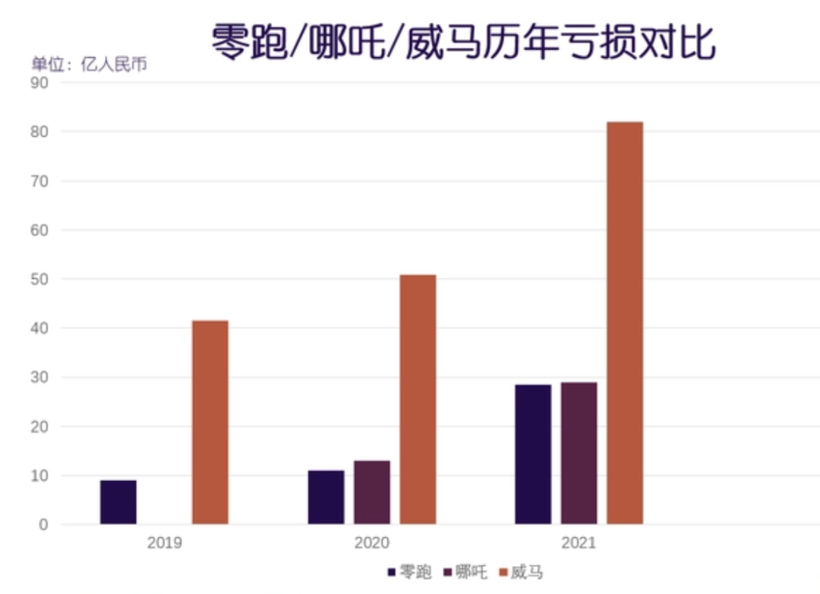 从披露的财务数据来看,虽然零跑汽车、威马汽车、哪吒汽车的品牌定位和主攻市场存在差异,但它们的财务数据都是长期处于高亏损状态,尤其是威马汽车。