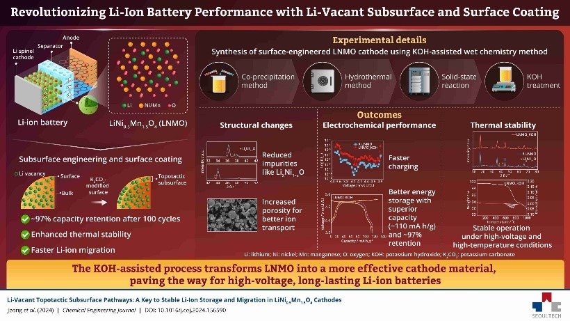 车友星联盟讯 随着全球对经济高效且可持续电池的需求不断增长,锂离子电池作为储能解决方案处于领先地位。然而,要延长电动设备的使用时间,就必须在此类电池中实现高能量密度和长期稳定性。LiNi₀.₅Mn₁.₅O₄(LNMO)以其热稳定性和成本效益著称,是一种很有前景的高压阴极材料。然而,其应用受到一些不良副反应的限制,例如电解质分解,导致其性能会随时间下降。
