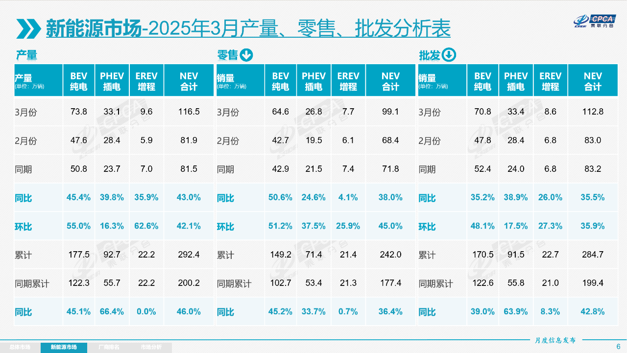 据乘联分会数据,3月新能源乘用车市场零售99.1万辆,同比增长38%,环比增长45%,1-3月累计零售242万辆,同比增长36.4%。