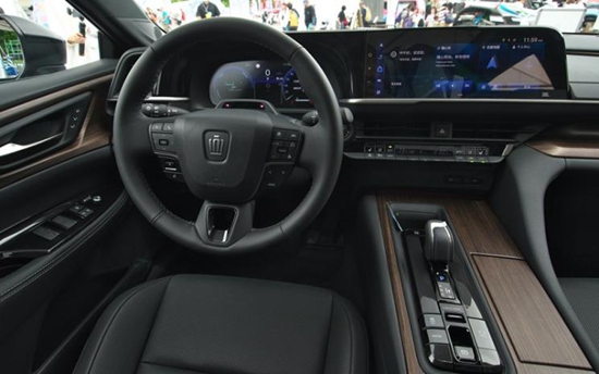 在内部,车辆采用了大量实木与皮革材料,营造出豪华氛围,而12.3英寸液晶仪表和12.3英寸中控屏幕也营造出科技气息。在细节方面,新车也保留了机械换挡杆和大量物理按键。