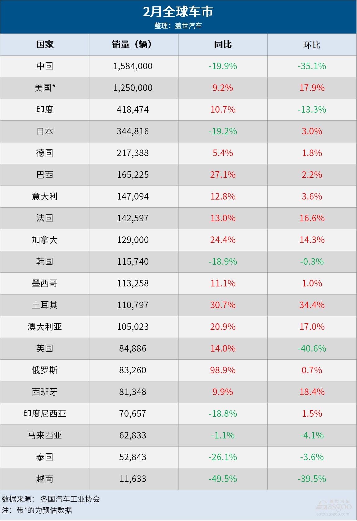 具体来看,2月份,中国汽车产销为150.6万辆和158.4万辆,环比分别下降37.5%和35.1%,同比分别下降25.9%和19.9%。对此,中汽协副秘书长陈士华分析指出,2月是春节月,有效工作日减少,且部分购车需求已在春节前得到释放,汽车产销量总体较1月有所回落。