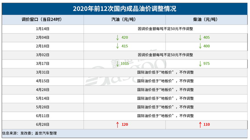 本轮调价是今年以来的第12次调价。本轮过后,2020年成品油调价呈现出“1涨3跌8搁浅”的格局,累计来看,今年汽油跌幅达1730元/吨,柴油跌幅1670元/吨。