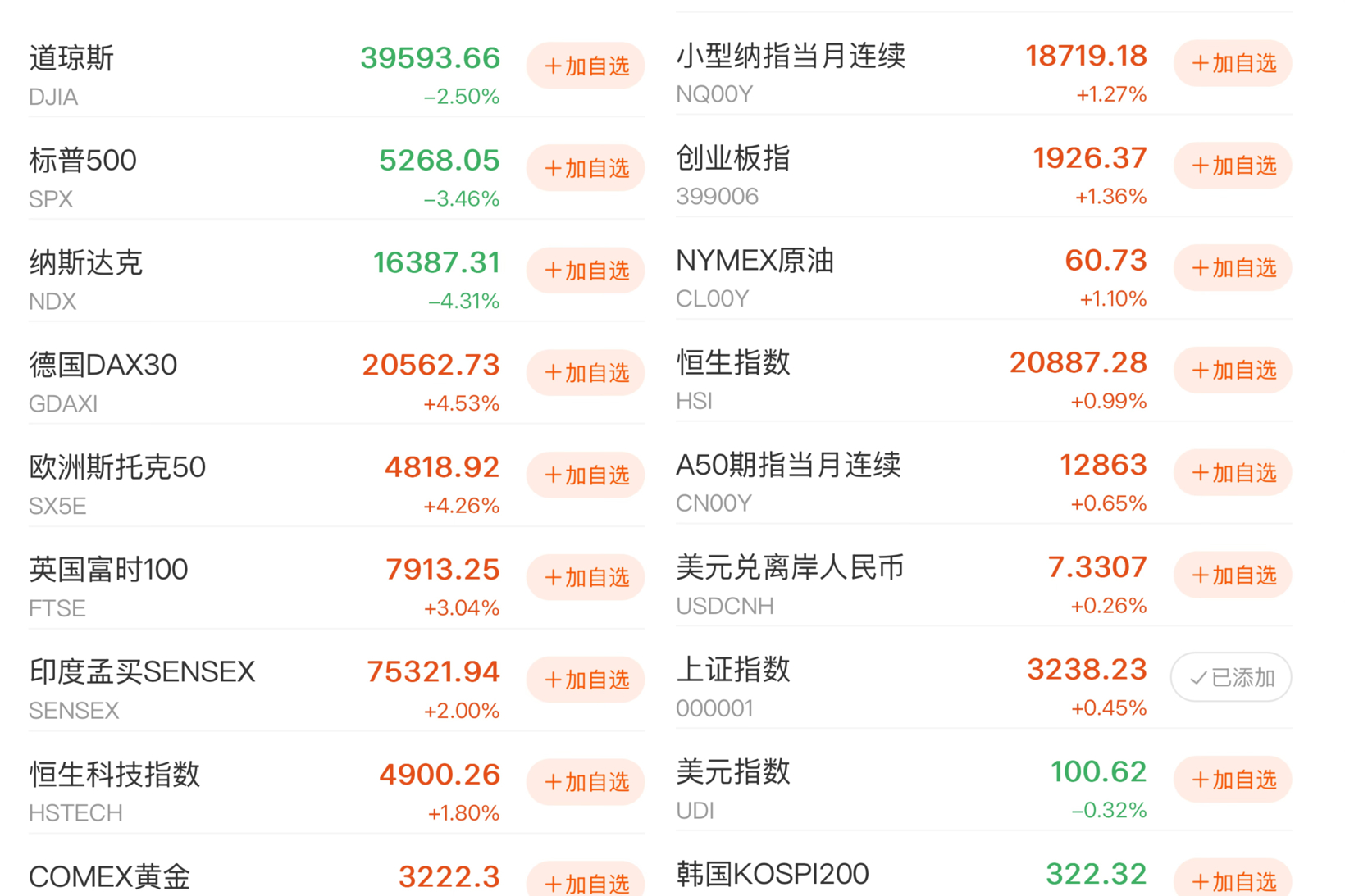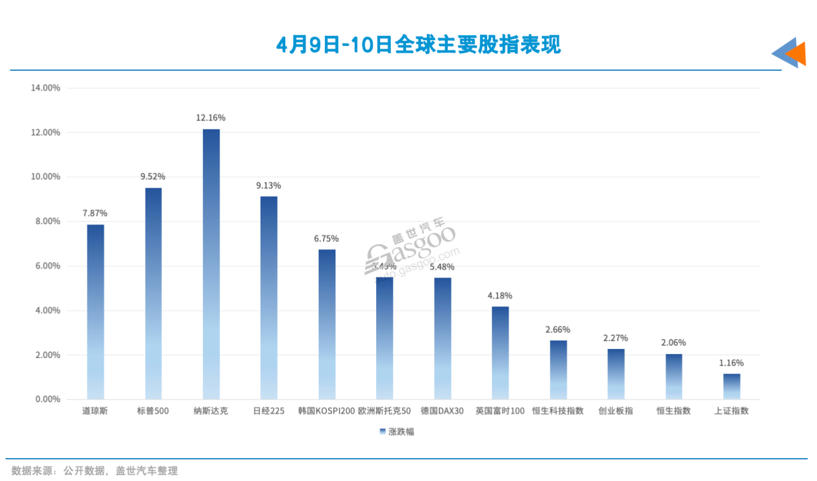 消息一经发布,全球资本市场情绪瞬间高涨。美东时间4月9日,美股应声暴涨,标普500指数单日飙升9.5%,纳斯达克指数更是劲增12.2%以上。